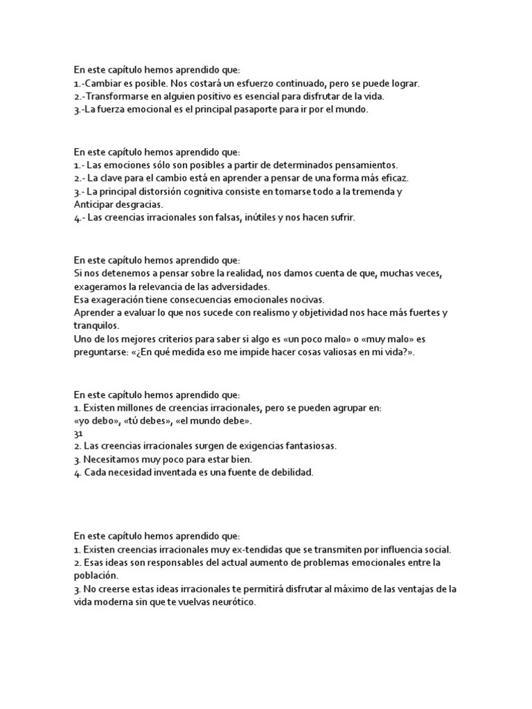 Dices que te parece difícil llevar a cabo algunas de las técnicas que propone rafael santandreu, solo comentarte que no es en absoluto complicado, solo requiere esfuerzo. La lectura de este libro nos empuja no sólo a reflexionar, sino a pasar a la acción, aunque no sin esfuerzo, al tiempo que nos prepara para una vida futura más plena y gratificante. Dices que te parece difícil llevar a cabo algunas de las técnicas que propone rafael santandreu, solo comentarte que no es en absoluto complicado, solo requiere esfuerzo. 12.03.2012 · buen resumen del libro «el arte de no amargarse la vida», plasmas estupendamente la esencia de la terapia cognitiva. 12.08.2015 · resumen del libro el arte de no amargarse la vida como indica el autor, la vida no es fácil, y está llena de retos y acontecimientos adversos que necesitan ser resueltos. Durante estos meses tenemos que leer la obra de paul watzlawick el arte de amargarse la vida y voy a ir comentándolo y resumiéndolo capítulo por capítulo en esta nueva pagina ampliando algunos capítulos que a mi me han parecido importantes o interesantes. El arte de no amargarse la vida cuenta que todos estos trastornos emocionales podrían calificarse de terribilitis. Durante estos meses tenemos que leer la obra de paul watzlawick el arte de amargarse la vida y voy a ir comentándolo y resumiéndolo capítulo por capítulo en esta nueva pagina ampliando algunos capítulos que a mi me han parecido importantes o interesantes.